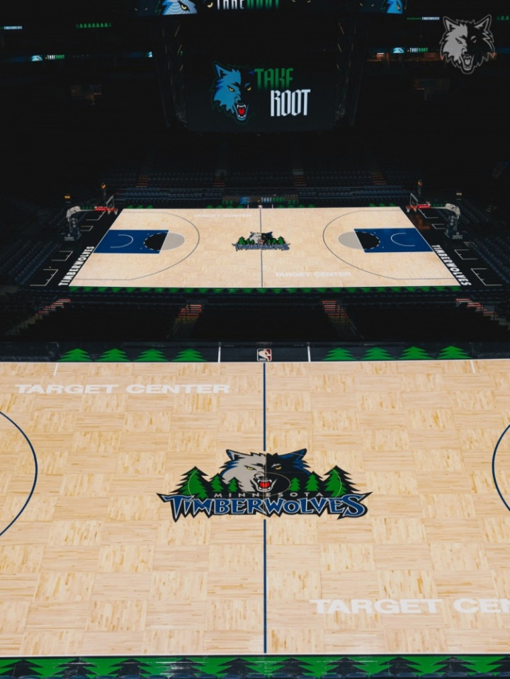 本场比赛是森林狼的赛季主场揭幕战,从本赛季开始,森林狼主场将采用全新的灯光布置,参考了湖人、尼克斯等主场的设计,球场变得更加明亮,而观众席变得比之前暗淡。