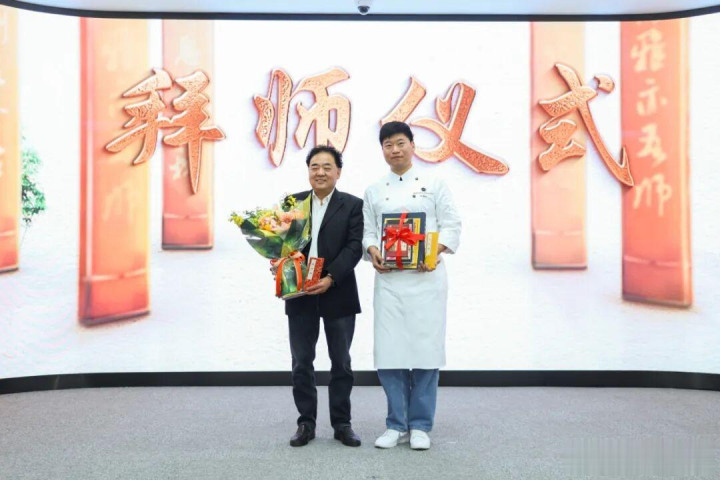 在现场师生的见证下,商贸旅游学校刘嘉禄老师正式拜任德峰大师为师,以庄重的仪式延续本帮菜“师徒相授”的传统,让技艺与精神在躬身传承中生生不息。