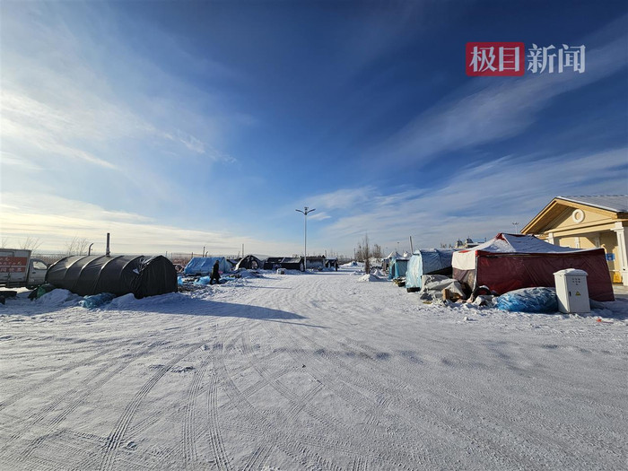 8日上午,极目新闻记者实地探访漠河市桥北自驾营地,看到一片平整的雪地上搭建了十多顶颜色各异、大小不同的帐篷,部分帐篷内安装了柴火炉取暖。记者注意到,一旁公共卫生间外的墙壁上挂着电子屏,实时显示着天气、室外温度、空气指数等数据信息。