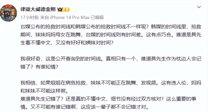 最近兰姐的律师透露大S死因,死亡的时间线有问题,台媒与韩媒公布的不对,