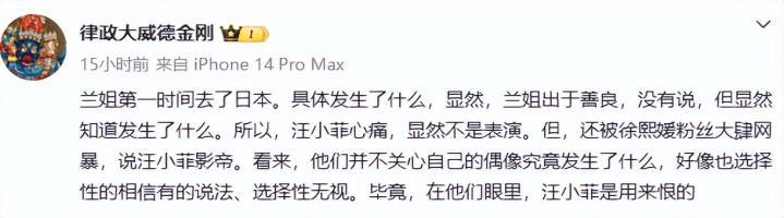 若真的是爱他,就应该好好善待他的孩子,而不是一天到晚的往墓地跑拍综艺,或者说是在网上的发文。
